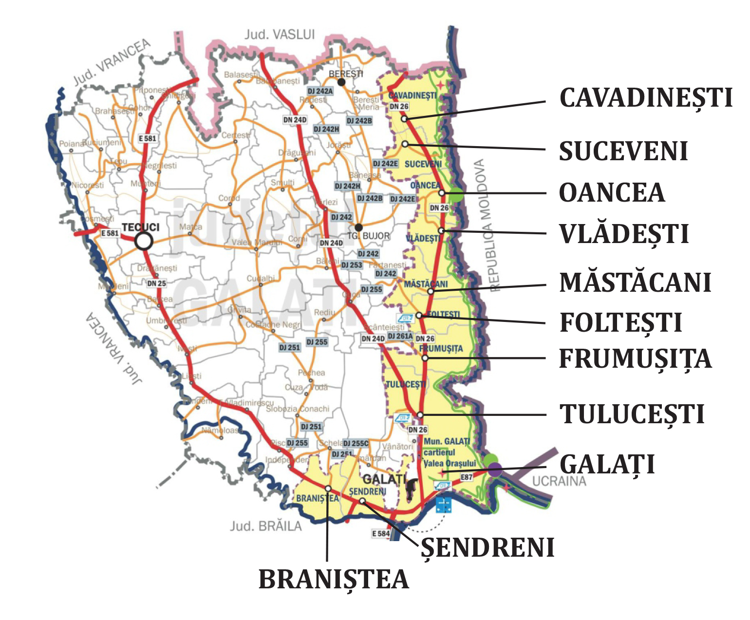 Proiectul se va implementa în toata zona pescărească Prut – Dunăre Galați, reprezentată de cele 11 UAT-uri: Cavadinești, Suceveni, Oancea, Vladești, Măstăcani, Foltești, Frumușița, Tulucești, Galați, Șendreni și Braniștea.